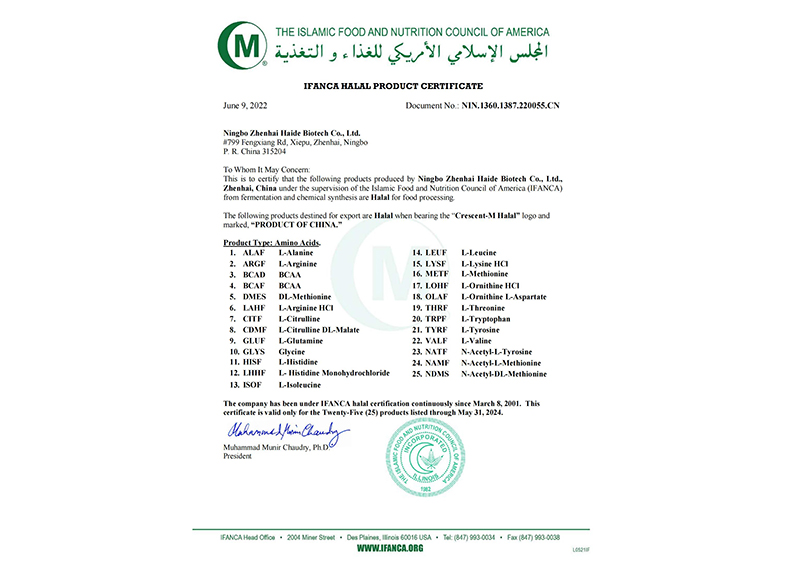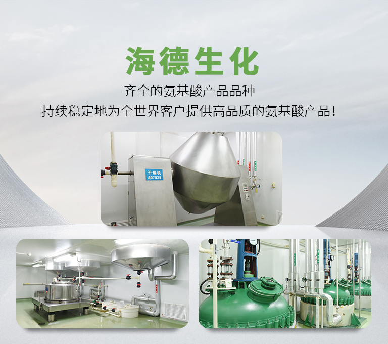 寧波市鎮(zhèn)海海德生化科技有限公司近40年來(lái)一直致力于氨基酸及其衍生物產(chǎn)品的研發(fā)、生產(chǎn)及銷(xiāo)售。產(chǎn)品被廣泛應(yīng)用于食品、保健品、醫(yī)藥、化妝品、飼料等各大產(chǎn)業(yè)。海德以其齊全的氨基酸產(chǎn)品品種,優(yōu)良的品質(zhì)和商業(yè)信譽(yù)、悠久的歷史在業(yè)內(nèi)具有極高的聲譽(yù)和知名度!